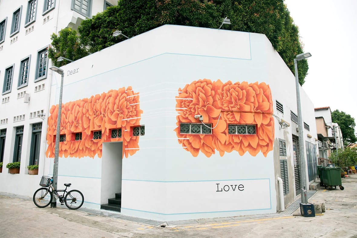 We’ll round off this list where we started — with a JABA work! Taking up the entire wall of a two-storey shophouse, this huge piece is titled “Daily Delivery” and features JABA’s signature futuristic take on the traditional tiffin trade aka the original food delivery service.