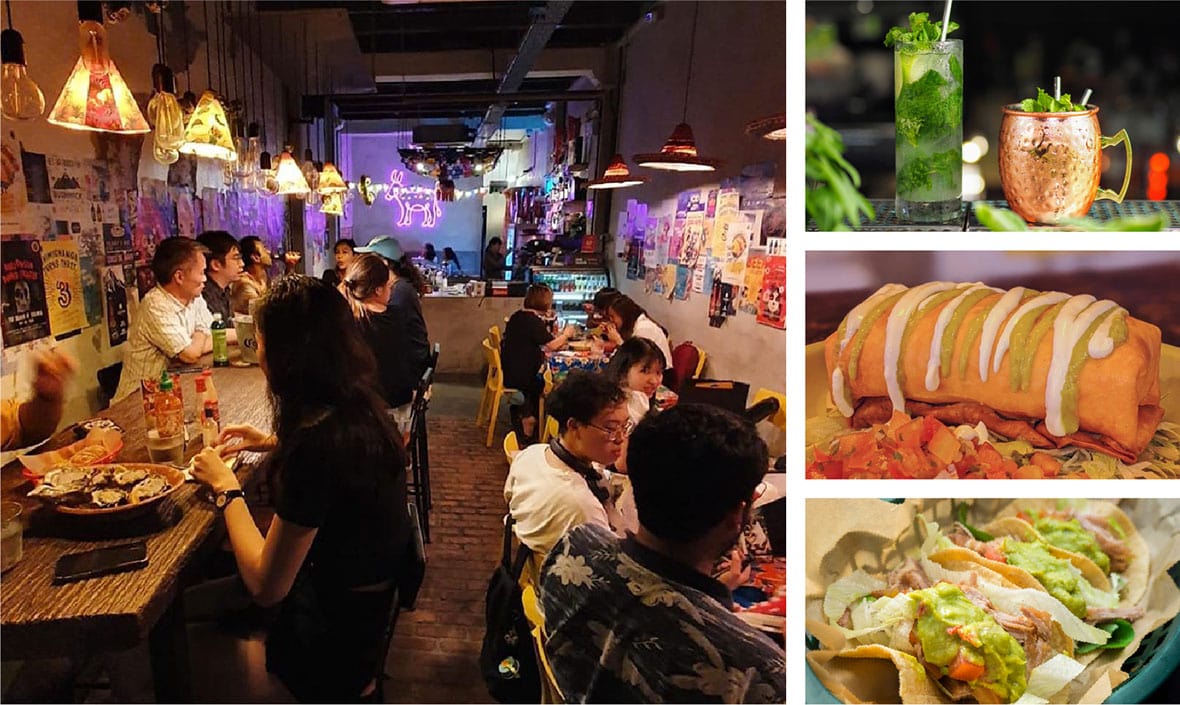 Touted as the ‘first Mexican dive bar’ in Singapore, Chimichanga’s well-worn patina of tatty posters, flaking paint and naked bulbs melds charmingly into a hood of open-air vegetable stalls, scruffy hardware shops and forlorn backpackers’ hostels. Just as uncontrived are the Mex staples of tacos, quesadillas, carnitas, chipotle chicken, and chimichanga or deep-fried burrito. The shabby chic setting draws in Gen Zers swapping Slurpees for agave cocktails; Juan and José, however, might demand a more spirited mezcal to make this their cantina of choice.