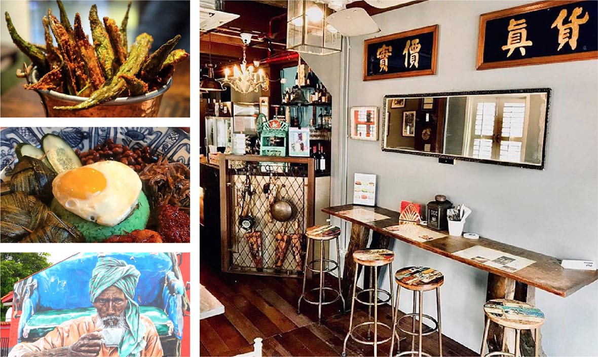 The Singapura Club is a heritage-style bistro, taproom and an all-day dining joint. The hodgepodge of curios, antiques, and wall murals of early migrant workers, defines its nostalgic vibes and menu of chapalang local fare. Okra fries, nasi lemak, fried laksa, butter chicken and salmon tikka – the latter two surely a nod to the ethnic precinct. Located at the crossroads of Dunlop Street and Clive Street, this archaic mélange somehow worked, with expat revellers digging this place, adding cadence to the ghetto’s frenetic soundscape – reliving the hedonistic colonial days of Colonel Samuel Dunlop and General Robert Clive.